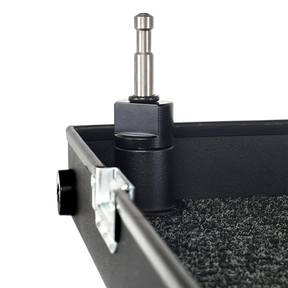 - The Corner Plug with 5/8" Baby Pin fits into one of four M8 holes on the top shelf of the Adicam cart