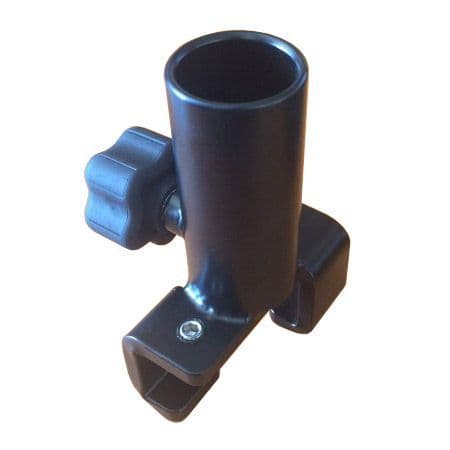 This universal female receiver fits on all Magliner and Camera Case cart cross bars (wide or narrow). It allows you to mount monitors in flight cases for example as well as other accessories with a male spigot.