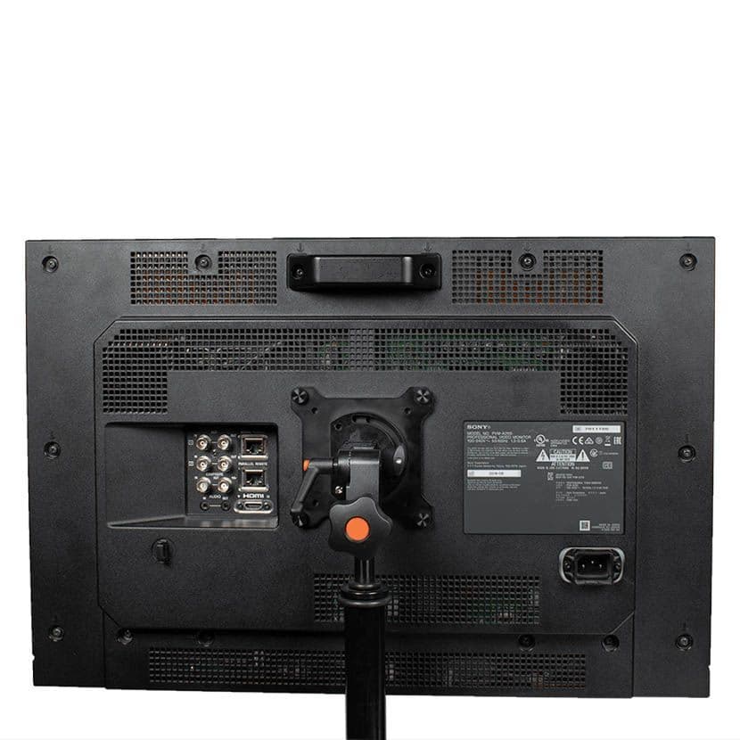 The MMS09 VESA Monitor Mount to 5/8″ Spigot – Ball-Loc – L/P supports broadcast & production quality monitors up to 77 lb/35kg, designed specifically for mobile cart/truck applications. Chosen by professionals & rental houses to mount VESA standard monitors to 5/8” (16mm) baby pins.
