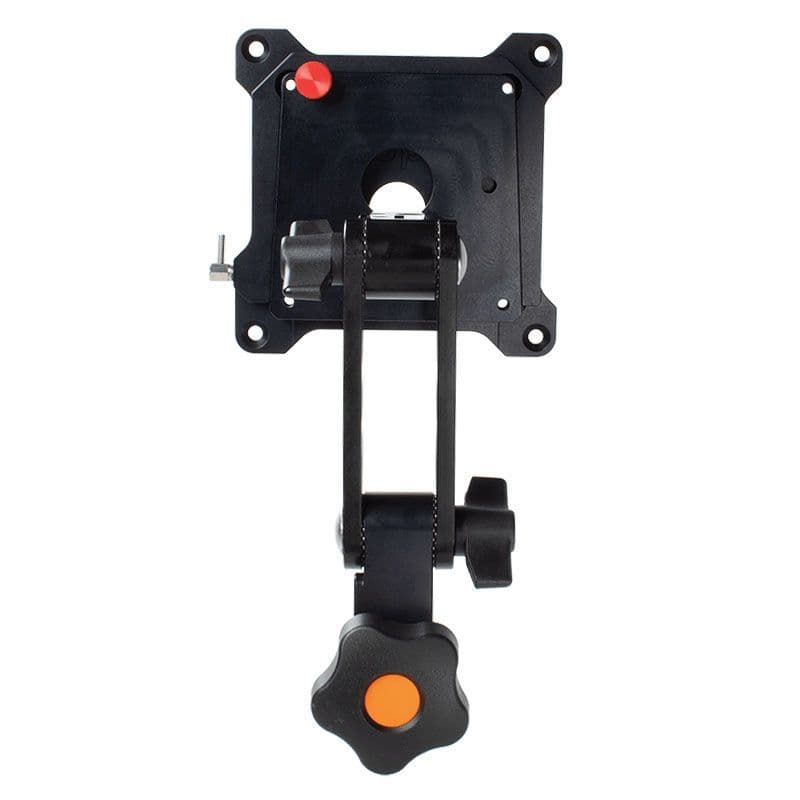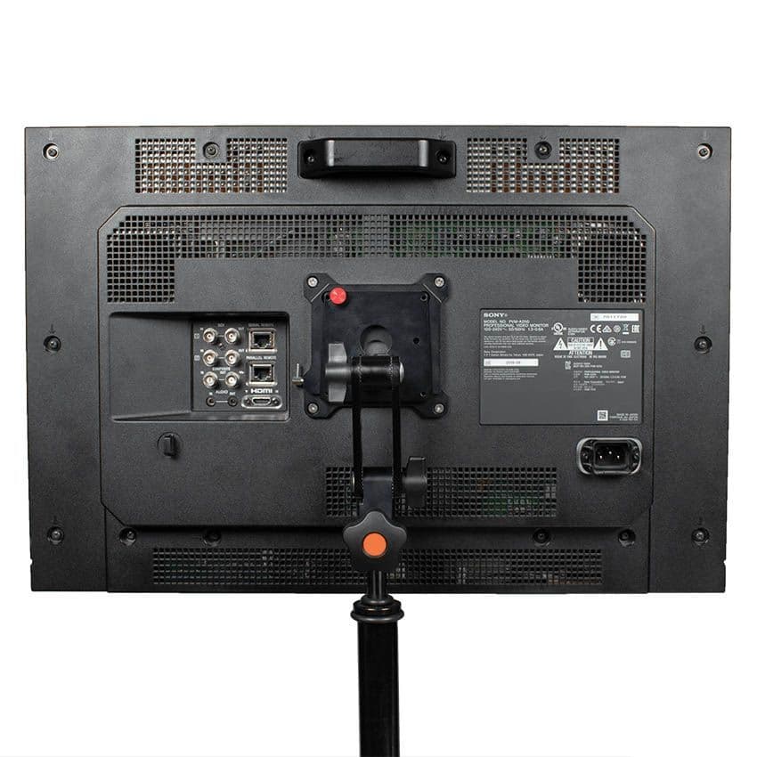 The MMS11-MC VESA Monitor Mount to 5/8" Spigot – Twin Ball-Loc – Quick Release supports broadcast & production quality monitors up to 77 lb/35kg, designed specifically for mobile cart/truck applications. Chosen by professionals & rental houses to mount VESA standard monitors to 5/8" (16mm) baby pins.